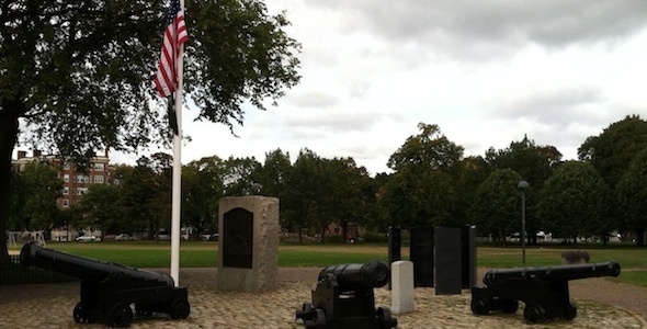 These cannons were abandoned at Fort Independence (Castle William) by the British forces when they evacuated the City of Boston on March 17th, 1776.