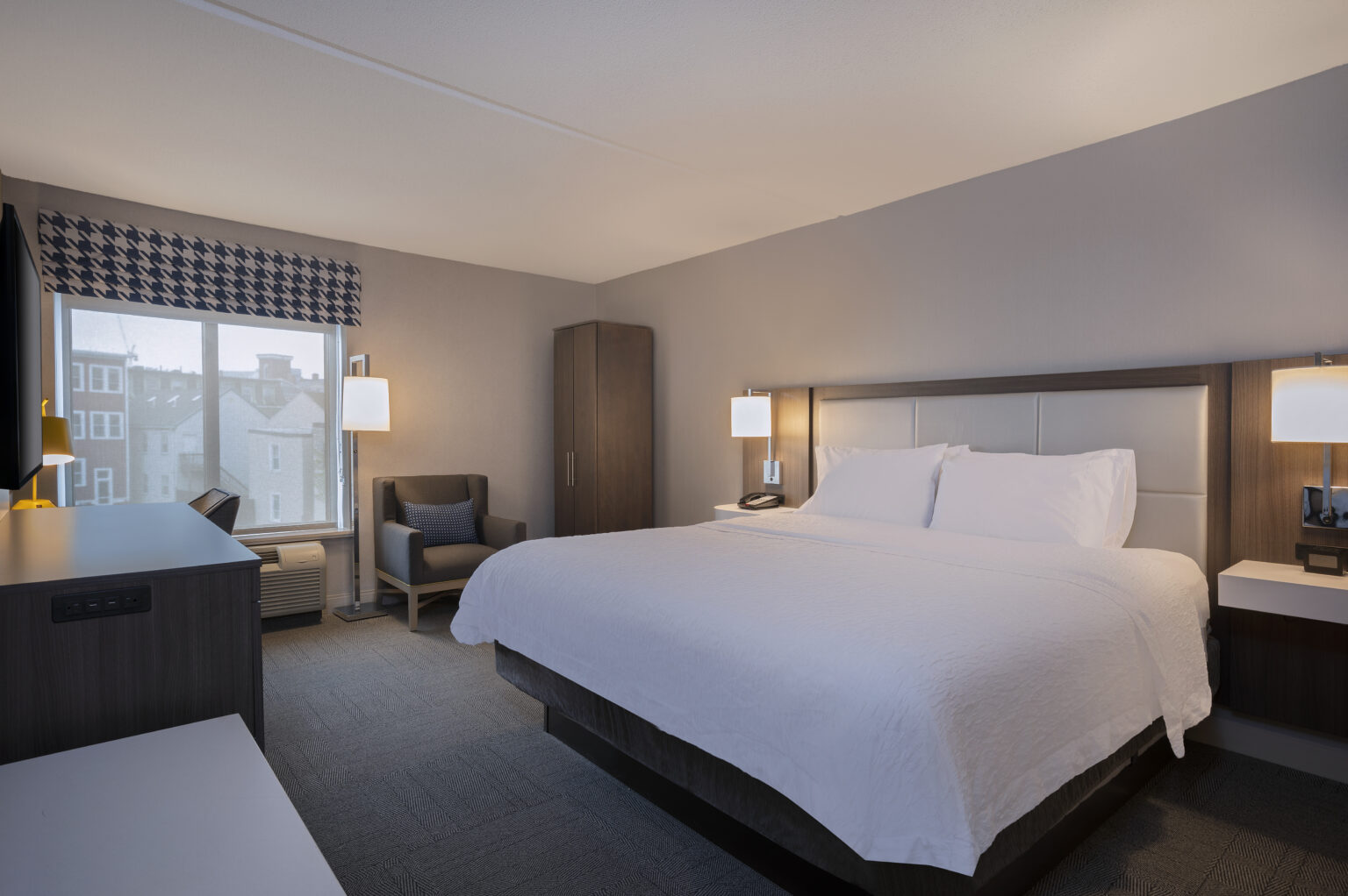 All stays at the hotel include in-room Wi-Fi plus the famous free Hampton On the House™ Hot Breakfast. Runnning late for a downtown Boston meeting? Grab Hampton's On the Run™ to go breakfast bag on the way out the front doors, available Monday through Friday.